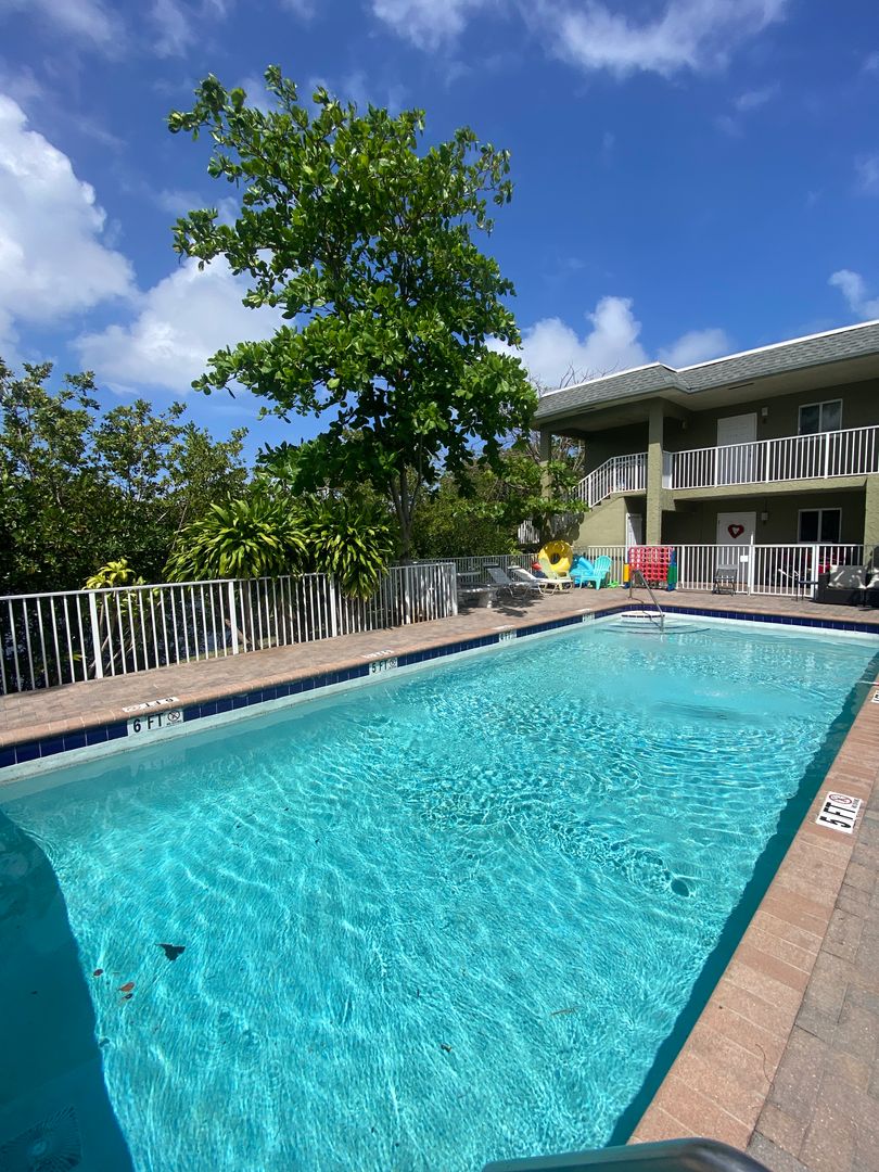 Second story 2/1, in a building with a pool and backing up to the river!